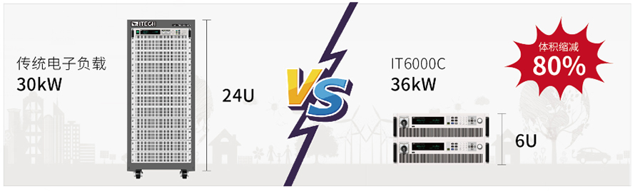普通的能耗性電子負(fù)載不僅耗能耗電,本身的體積和重量也大。30kW的能耗型負(fù)載體積至少要24U,不但搬運(yùn)困難,成本較高。IT8000系列能量式直流電子負(fù)載采用高功率密度設(shè)計(jì),3U體積內(nèi)可提供18kW的功率吸收。同樣的輸出功率,體積減少了80。