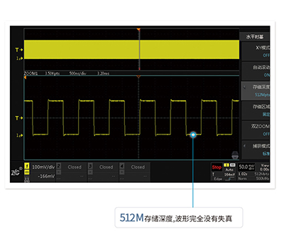 存儲(chǔ)深度等于采樣率乘以采樣時(shí)間,512M大存儲(chǔ)深度,長(zhǎng)時(shí)間捕獲波形,依然不會(huì)出現(xiàn)波形失真。