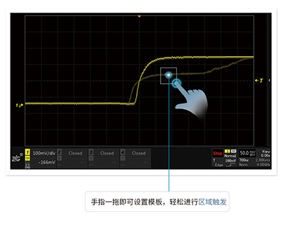 波形刷新率越高,死區(qū)時(shí)間就越短。ZDS4000系列示波器,標(biāo)配1M次波形刷新率,配合模板觸發(fā),讓您最大概率的發(fā)現(xiàn)并捕獲異常信號(hào)。
